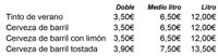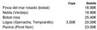 CARTA DE VINOS, CERVEZAS Y OTRAS BEBIDAS