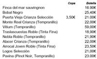 CARTA DE VINOS, CERVEZAS Y OTRAS BEBIDAS